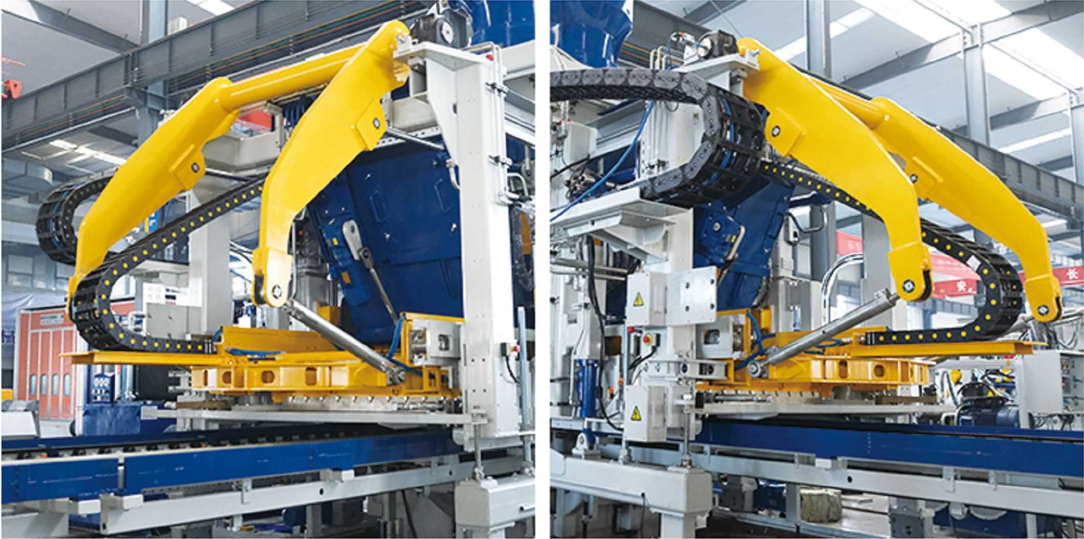 ਉੱਚ-ਗੁਣਵੱਤਾ ਫਰੇਮ ਡਿਜ਼ਾਈਨ: ਮੁੱਖ ਫਰੇਮ ਪੇਟੈਂਟ ਟੈਕਨਾਲੋਜੀ ਦੇ ਨਾਲ ਤਿਆਰ ਕੀਤੀ ਗਈ ਉੱਚ-ਤਾਕਤ ਵੇਲਡ ਫਰੇਮ ਬਣਤਰ ਨੂੰ ਅਪਣਾਉਂਦੀ ਹੈ, ਜਿਸ ਨੂੰ ਵਿਸ਼ੇਸ਼ ਸਟੀਲ ਦੁਆਰਾ ਵੇਲਡ ਕੀਤਾ ਜਾਂਦਾ ਹੈ। ਫਰੇਮ ਦੀ ਉੱਚ ਗੁਣਵੱਤਾ ਅਤੇ ਉੱਚ ਸਥਿਰਤਾ ਨੂੰ ਯਕੀਨੀ ਬਣਾਉਣ ਲਈ ਪੂਰੇ ਫਰੇਮ ਨੂੰ ਬੁਢਾਪੇ ਦੇ ਵਾਈਬ੍ਰੇਸ਼ਨ ਟ੍ਰੀਟਮੈਂਟ ਦੇ ਅਧੀਨ ਕੀਤਾ ਜਾਂਦਾ ਹੈ। ਇਹ ਉੱਚ ਸ਼ੁੱਧਤਾ ਦੇ ਨਾਲ, ਸਮਰਥਨ ਅਤੇ ਮਾਰਗਦਰਸ਼ਕ ਵਜੋਂ ਵੱਡੇ-ਵਿਆਸ ਦੇ ਕਾਲਮਾਂ ਦੀ ਵਰਤੋਂ ਕਰਦਾ ਹੈ। ਸਟ੍ਰਿਪਿੰਗ ਮਕੈਨੀਕਲ ਸਿੰਕ੍ਰੋਨਾਈਜ਼ੇਸ਼ਨ, ਸਟੀਕ ਡਿਮੋਲਡਿੰਗ, ਅਤੇ ਤਿਆਰ ਉਤਪਾਦਾਂ ਦੀ ਉੱਚ ਇਕਸਾਰਤਾ ਨੂੰ ਅਪਣਾਉਂਦੀ ਹੈ।